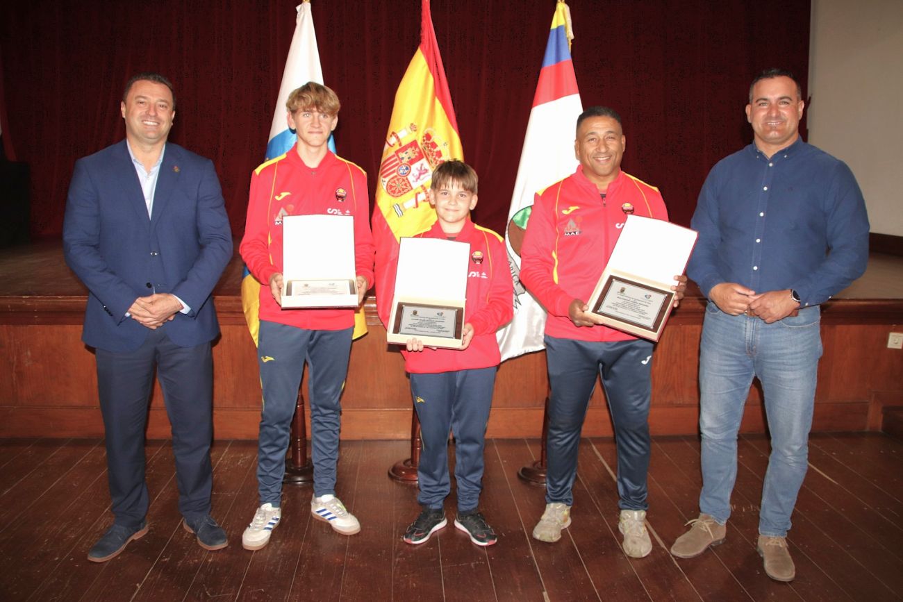 El Ayuntamiento reconoce el desempeño europeo de los hermanos Daniel y Leo Vallejo y el maestro Wellington Castro. Óscar Noda destaca “el compromiso y esfuerzo de los jóvenes deportistas y el apoyo de sus familias”.