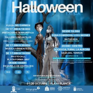 El Ayuntamiento de Yaiza y la Federación Interinsular de la Pyme (Felapyme) animan a participar este viernes 31 de octubre del programa de celebración de halloween organizado por ambas entidades en Playa Blanca Playa, sede de actividades en distintos puntos céntricos de la localidad a partir de las 17:30 horas, siendo uno de los grandes atractivos de la noche la casa del terror, que abrirá sus puertas a las 20:00 horas en el centro cultural La Aurora, epicentro del miedo a cuenta de la interpretación que encantó a cientos de residentes y visitantes el año pasado y que vuelve este 2025 con nuevas y terroríficas sorpresas. (más…)