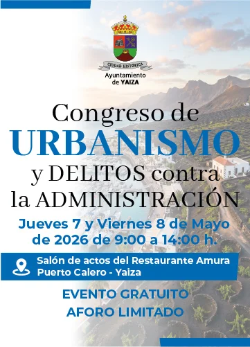 El Ayuntamiento de Yaiza reúne en Lanzarote a prestantes juristas del Poder Judicial y expertos en planeamiento urbanístico en el Congreso Urbanismo y Delitos contra la Administración, previsto los días jueves 7 y viernes 8 de mayo, en horario de mañana, en el salón de actos del Restaurante Amura de Puerto Calero. El evento es gratuito, pero su asistencia requiere inscripción previa rellenando el formulario disponible en portada de la web municipal www.yaiza.es, donde además aparece publicada la información detallada de las temáticas a tratar y sus ponentes. (más…)