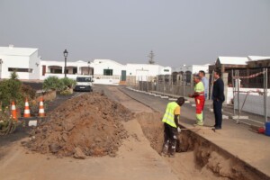 Los trabajos de excavación e instalación de tuberías se realizan de la periferia hacia el centro del pueblo. La inversión de 1,8 millones de euros es cofinanciada por Yaiza y el Gobierno de España.