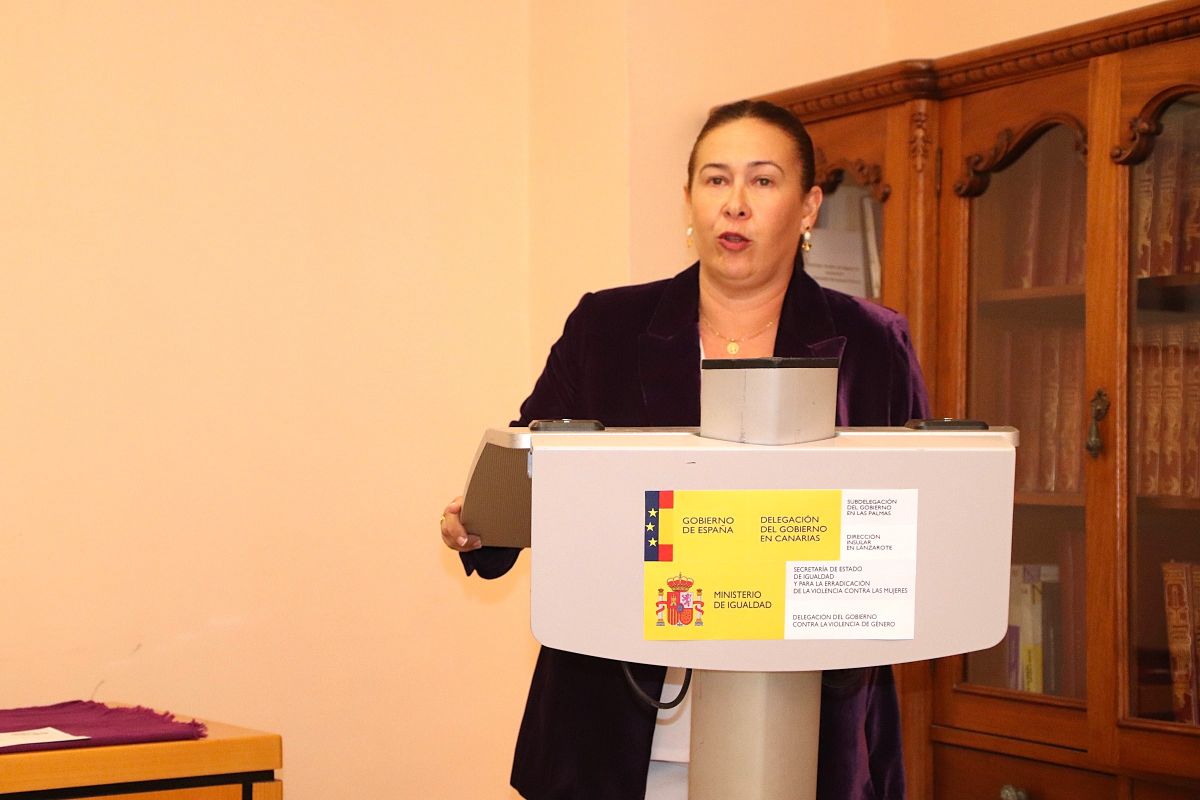 Olivia Cedrés es la actual técnica coordinadora del Área de Servicios Sociales de Yaiza y en su discurso destacó el papel de los ayuntamientos en la protección de los derechos de las mujeres y su trabajo en la prevención y atención cuando se presentan casos de violencia machista en coordinación con los cuerpos policiales.