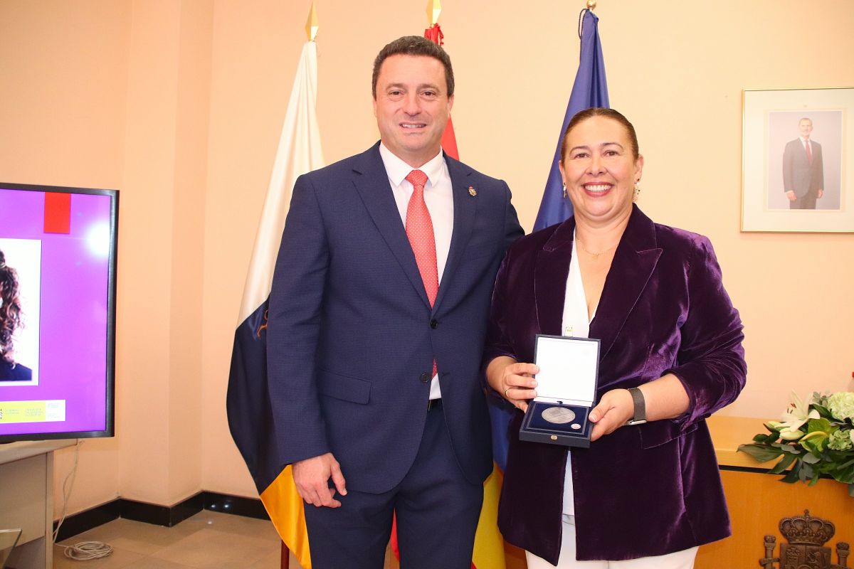 El delegado del Gobierno en Canarias, Anselmo Pestana, acompañado del director insular de la Administración General del Estado en Lanzarote, Pedro Viera, hizo entrega este viernes 21 de noviembre a Olivia Cedrés Rodríguez de la Medalla a la Promoción de los Valores de Igualdad, otorgada por el Ministerio de Igualdad del Gobierno de España. Olivia Cedrés estuvo arropada por el alcalde de Yaiza, Óscar Noda, el concejal de Servicios Sociales de Yaiza, César Rijo, representantes públicos, cuerpos y fuerzas de seguridad del Estado, familiares y amigos y amigas.