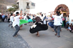 Tras la procesión y como viene siendo habitual durante los últimos años, la Agrupación Folklórica Rubicón de Yaiza brindó su ofrenda al patrono cantando y bailando música canaria.