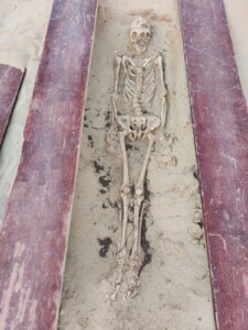Uno de los principales objetivos de esta campaña es “excavar por completo el área funeraria”, declara González, donde “se han recuperado un total de dieciséis individuos enterrados según el rito cristiano, tres en esta última intervención”. Sin embargo, se prevé que a medida que avance la intervención puedan aparecer nuevos enterramientos.