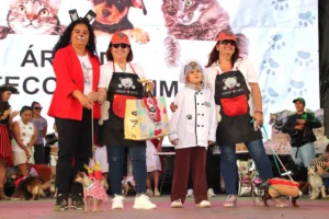 Una veintena de mascotas participaron del Carnaval Canino organizado por el Ayuntamiento de Yaiza “para sensibilizar sobre el cuidado animal y la adopción de perros que son atendidos en el centro municipal mientras consiguen hogar de acogida o adopción”, así lo explica la concejala de Bienestar Animal de Yaiza, Águeda Cedrés, que presidió el acto de entrega de premios junto al concejal de Festejos, Daniel Medina, y la concejala de Seguridad, Beatriz Vázquez.