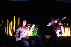 Haciendo gala de su virtuosismo, la violinista Claudia Guerra Martín y el guitarrista Daniel León Sánchez moldearon a su antojo paisajes y figuras, interpretando emociones de muchas maneras, una función inspirada en la obra del literato granadino Federico García Lorca. Los pueblos de Granada y Yaiza unidos por la magia de la música en el mágico anochecer de Las Casitas.