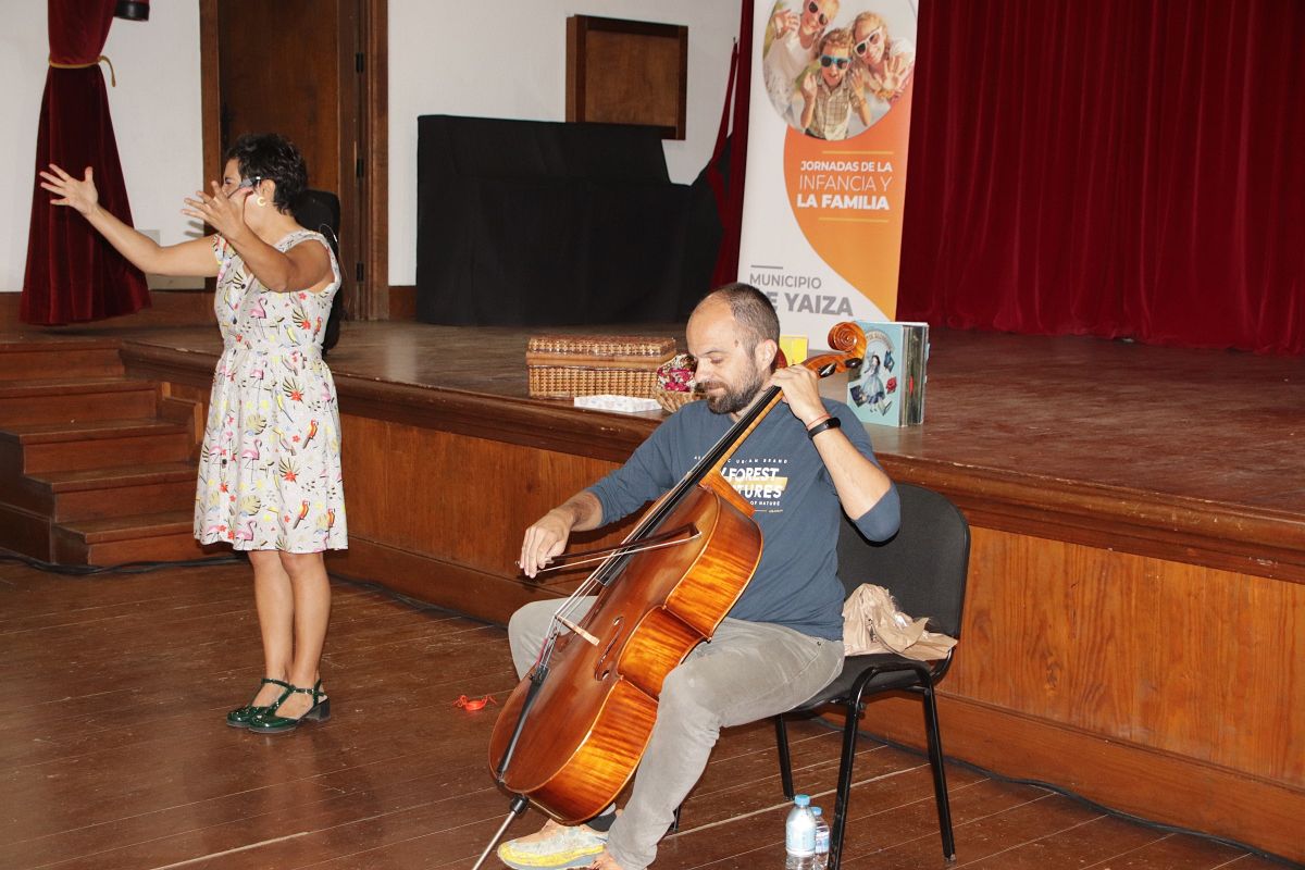 La propuesta artística de Vicki Dos Santos y Aarón Márquez, mezcla y complemento de narración oral y música, enganchó desde el primer acto a niños, niñas y familias de Yaiza que disfrutaron este miércoles en la Casa de la Cultura del espectáculo ‘Regalitos’, la primera actuación de las cuatro sesiones de cuentacuentos preparadas por el Ayuntamiento que preside Óscar Noda dentro del programa de la vigésima sexta edición de la Jornadas de la Infancia y la Familia de Yaiza.