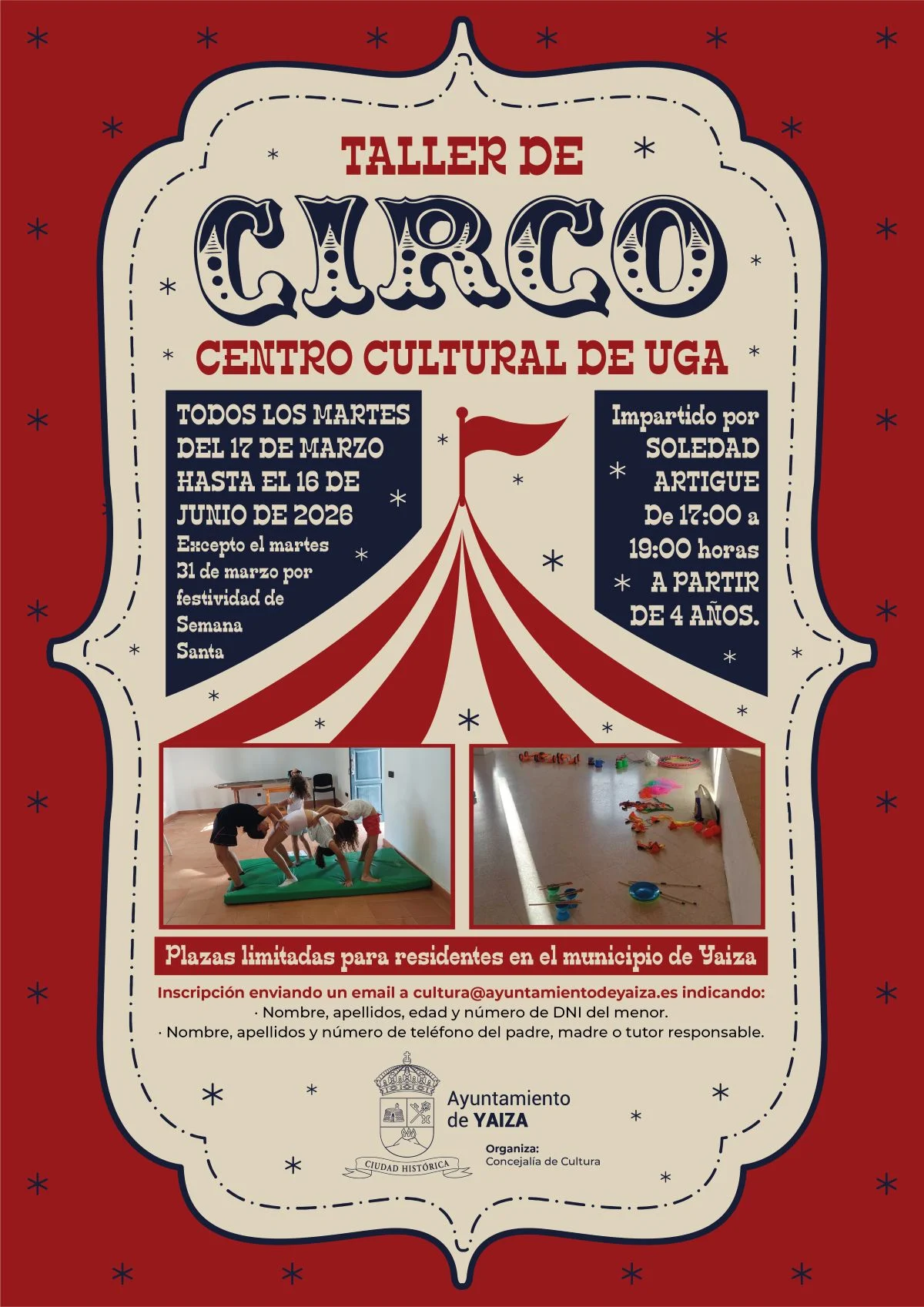 Una de las novedades que ofrece Yaiza en marzo, a partir del día 17, es el taller de circo programado todos los martes hasta el 16 de junio en el Centro Cultural de Uga. Los participantes están llamados a aprender técnicas circenses combinadas con participación comunitaria para el estímulo del potencial artístico.