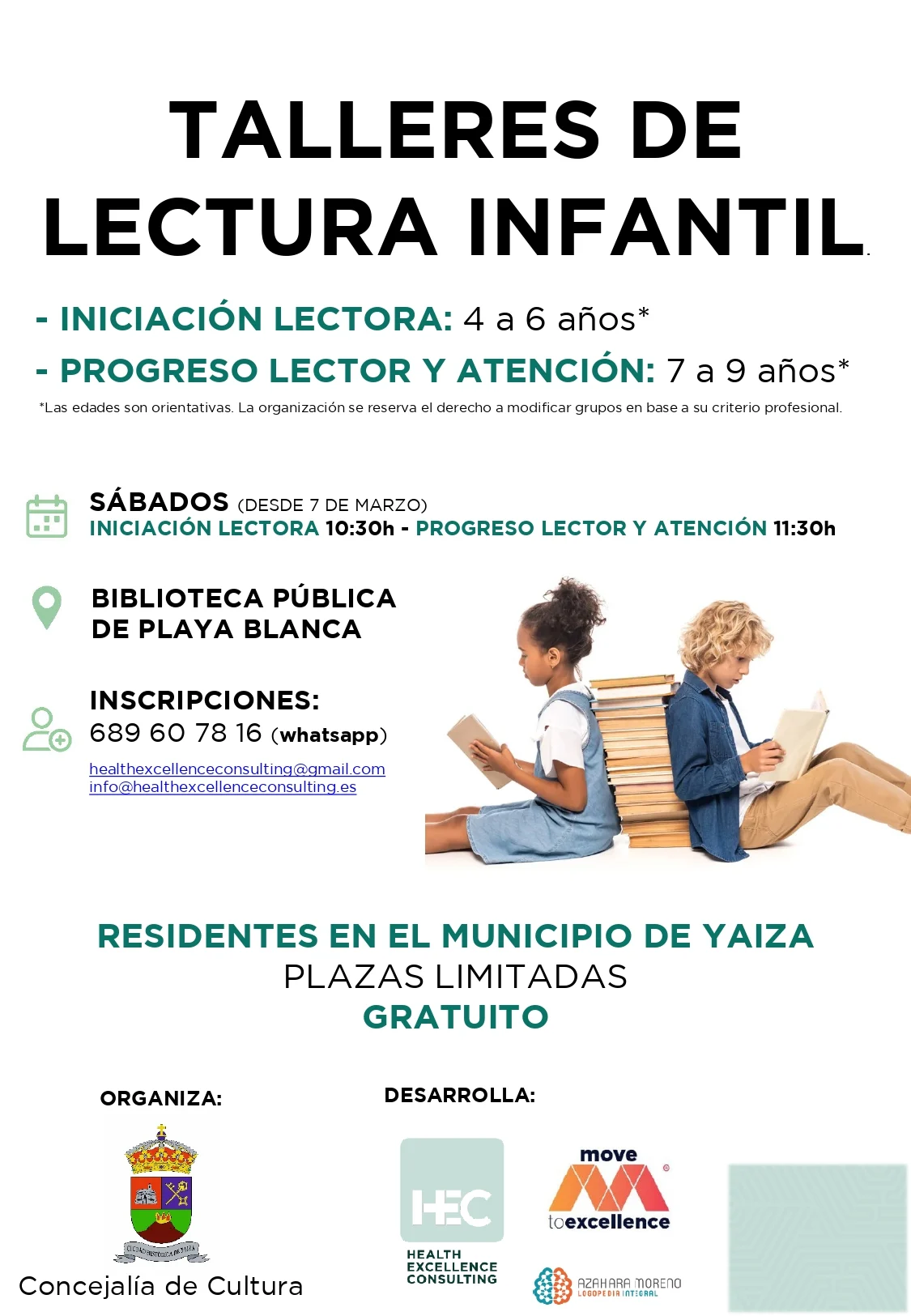 La literatura y el fomento al hábito de leer siguen siendo una de las prioridades del Área de Cultura dirigida por César Rijo. Marzo acoge a partir del 7 de marzo un nuevo taller de lectura infantil que se realizará los sábados en la Biblioteca de Playa Blanca. La iniciativa se plantea como una intervención de apoyo orientada a acompañar y reforzar las diferentes fases del desarrollo lector infantil, desde la aproximación al lenguaje escrito hasta la consolidación de la comprensión lectora. La inscripción debe gestionarse por whatsApp: 689 60 78 16. Es gratuito y con plazas limitadas.