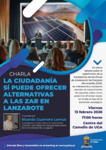 Yaiza advierte que el sector energético convencional, que ya gana mucho dinero, quiere participar de la transición ecológica a menos costes. “Las administraciones públicas no lo podemos permitir. Quieren implantar instalaciones de energías renovables en suelo rústico, porque resulta mucho más barato, cuando lo sensato es priorizar ubicaciones en suelo urbano sobre cubiertas y otros suelos antropizados y estimular las comunidades energéticas y el autoconsumo”, sostiene el alcalde de Yaiza, que como consejero del Cabildo insular ya presentó el año pasado una moción que proponía, entre otros extremos, la redefinición de la localización de las ZAR en Lanzarote, moción que fue rechazada por el gobierno de CC y PP, que ahora da marcha atrás y pide a Canarias lo que siempre ha defendido Yaiza. La charla del profesor Guerrero llega en un momento crucial por toda la información que puede aportar y el debate abierto alrededor del sector estratégico de las energías renovables.